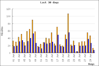 You can see the graph above. This is my blog stat for the month of June. Not nice but still I am happy. Kitna expect karu yaar zindagi se? Breaking News: Aamir Khan is on twitter now after the world of blogs. You can follow the Mr.Perfectionist at www.twitter.com/aamir_khan . Blogging is difficult if compared to twitter. I respected Amitabh Bachchan and Aamir Khan just because they were in the world of blogging while other actors were on twitter and now when both of them are on twitter, I have nothing to say about them. I respect Big B even now because even after being on twitter, he writes a blog daily as he used to which is very hard to maintain this type of consistency. I started blogging after reading Big B incessantly for many months. I saw him divulging so many good thoughts and experiences so I thought even I can talk with people on WWW about myself. I didn't wanted everyone to show that I am doing something they aren't. No, never ever I thought this but now I am happy that I have got a real target of my life through this blog. I want to be a Writer now.